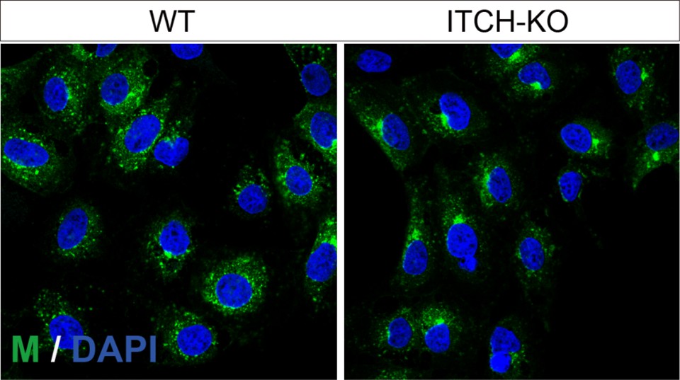 Xiang et al. investigated the role of ubiquitin E3 ligase ITCH in SARS-CoV-2 replication. First, they described the role of ITCH on the structural proteins. Here, the ubiquitination of E and M (but not S) leads to an enhanced interaction and presumably virion assembly. In addition, E and M ubiquitination seems to be necessary for p62-guided sequestration into autophagosomes for secretion. Furthermore, ITCH regulates S proteolytic cleavage by changing furin localization and inhibiting CTSL protease maturation. In addition, SARS-CoV-2 infection upregulates ITCH phosphorylation, whereas knockout of ITCH reduces SARS-CoV-2 replication.