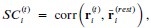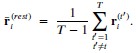 indicate the response 𝑟 of neuron i during trial t (t=1,..., T where T is the total number of trials). For a given trial t, we compute the average activity of the neuron excluding this trial:Throughout, the superscript (rest)means “all repetitions excluding repeat 𝑡”. The one-vs-rest correlation for the held-out repetition 𝑡 is: