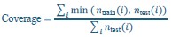 where, 𝑖 indexes age bins, 𝑛train and 𝑛test are the numbers of individuals in bin i in the sampled training set and HC test set, respectively. This metric quantifies the fraction of the test-set age distribution that is “covered” by the sampled training set and ranges from 0 (no test-set ages covered) to 1 (complete coverage of the test-set age distribution). For each condition, the mean and standard deviation of the coverage across repetitions were computed.